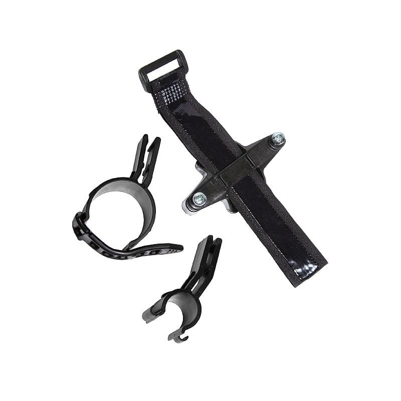 Univerzální upevňovací systém pro košík na láhev. Ideální pro rámy se složitou geometrií. Díky suchému zipu a silikonovému pásku můžete systém zavěsit na jakoukoli trubku.