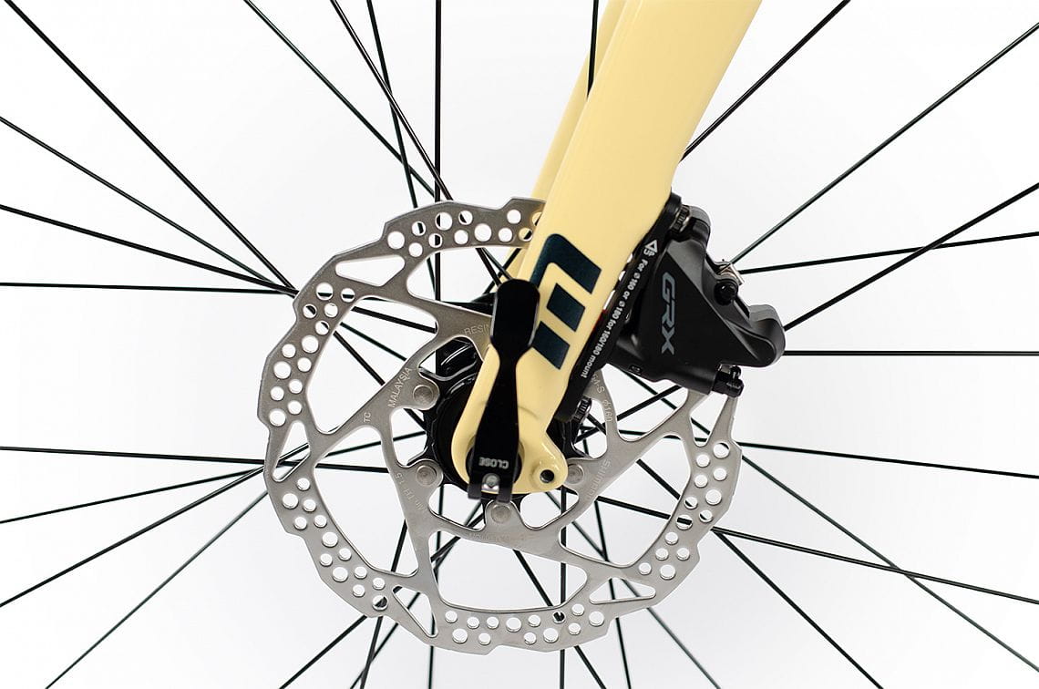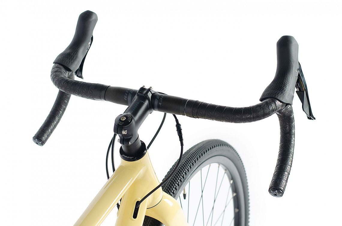 Lekka aluminiowa rama z całkowicie karbonowym widelcem, napęd Shimano GRX400 2x10 oraz wszechstronne opony Schwalbe G-One Allround – to połączenie, które daje prędkość na asfalcie i pewność na szutrze.