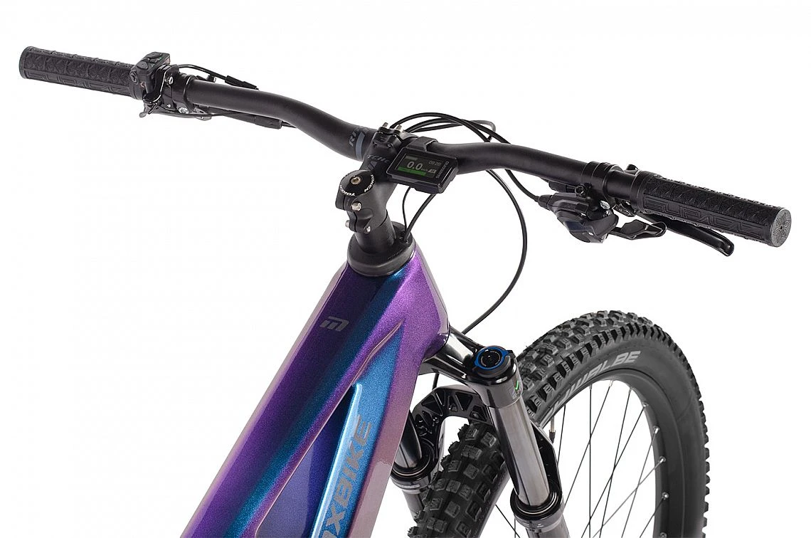 MAXBIKE Haku – karbonowa lekkość i precyzja w każdym calu. Połączenie karbonowej ramy, mocnego silnika Shimano EP801, zawieszenia RockShox i precyzyjnej przerzutki Shimano CUES 1x11 sprawia, że Haku to wszechstronny rower elektryczny zarówno do sportowej, jak i technicznie wymagającej jazdy. Oferuje on wydajność, lekkość i doskonałą kontrolę – dokładnie to, czego oczekujesz od topowego roweru elektrycznego na szlaki.
