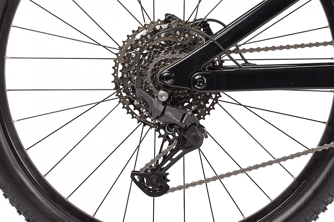 Widelec RockShox Psylo Silver RC (160 mm, Boost) w połączeniu z amortyzatorem RockShox Deluxe Select R gwarantuje doskonałą czułość, stabilność i precyzyjną reakcję podczas jazdy. Amortyzator tylny skutecznie tłumi nawet drobne nierówności, zapewniając jednocześnie wysokie wsparcie pedałowania – idealne na wymagające szlaki i szybkie zjazdy. - Przerzutka Shimano CUES 1x11 – wytrzymały napęd zapewniający płynną pracę.