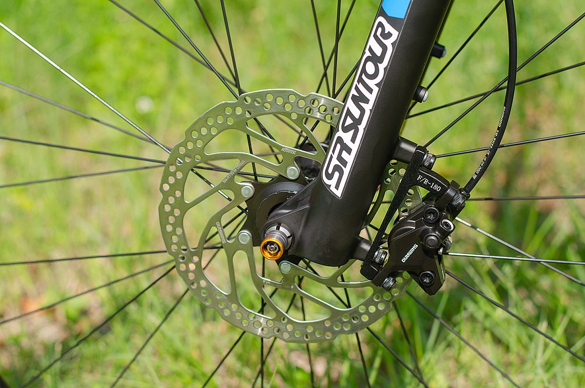 Hydrauliczne hamulce Shimano MT400 gwarantują pewność i bezpieczeństwo w każdym terenie, nawet podczas długich zjazdów lub jazdy w deszczową pogodę. - Sztywne osie zapewniające większą sztywność i precyzyjne sterowanie
