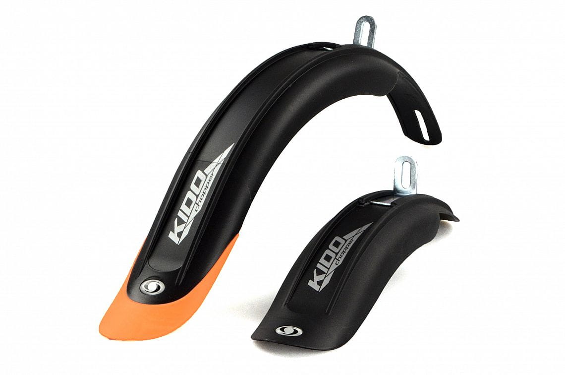 Sada předního a zadního blatníku v prodloužené verzi pro dětská kola 20". Blatníky jsou vyrobeny z vysoce odolného a tuhého plastu, který zamezuje vibracím v nerovném terénu. Jejich design připomíná blatníky z chopperů, takže dětské kolo během chvíle