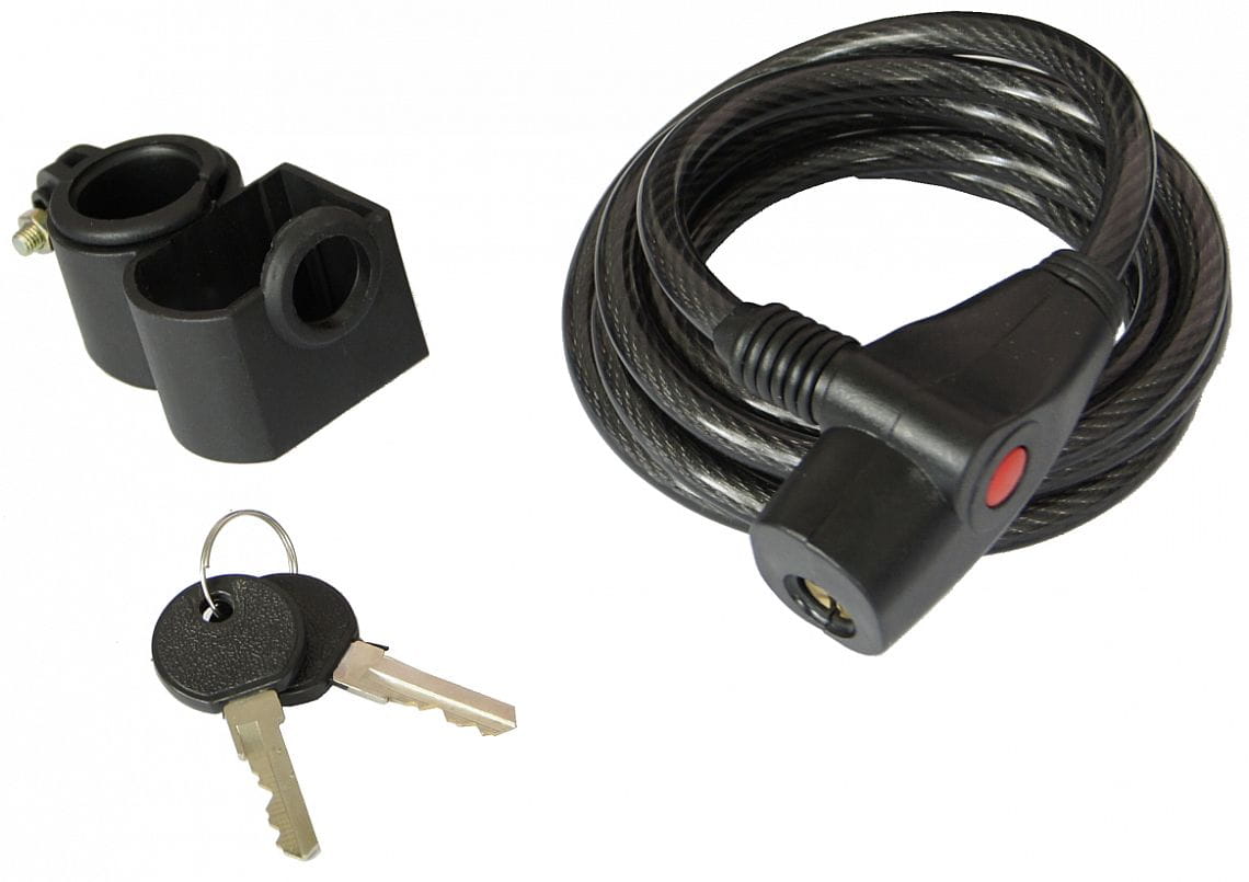 Bezpečnostní lankový zámek potaženy PÚ. průměr lanka: 8 mm délka lanka: 1800 mm sada 2 klíčů váha: